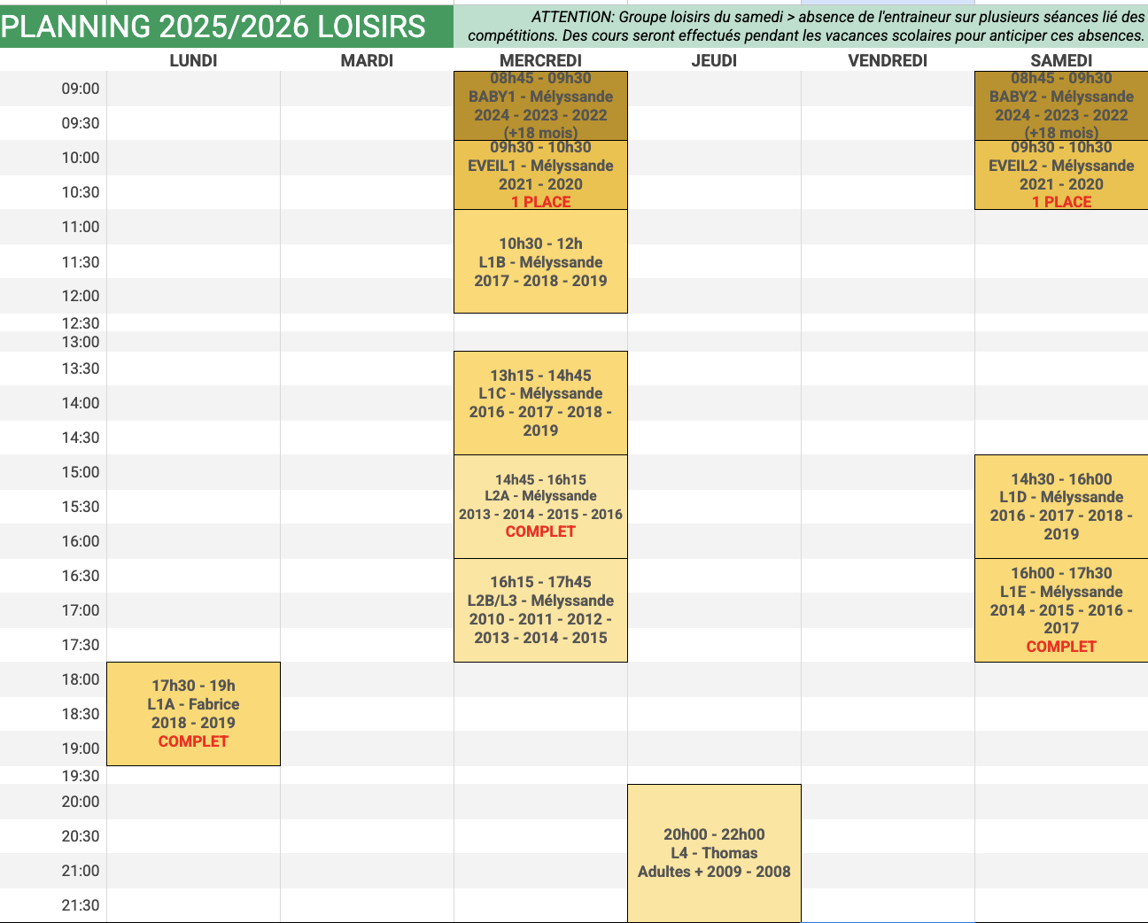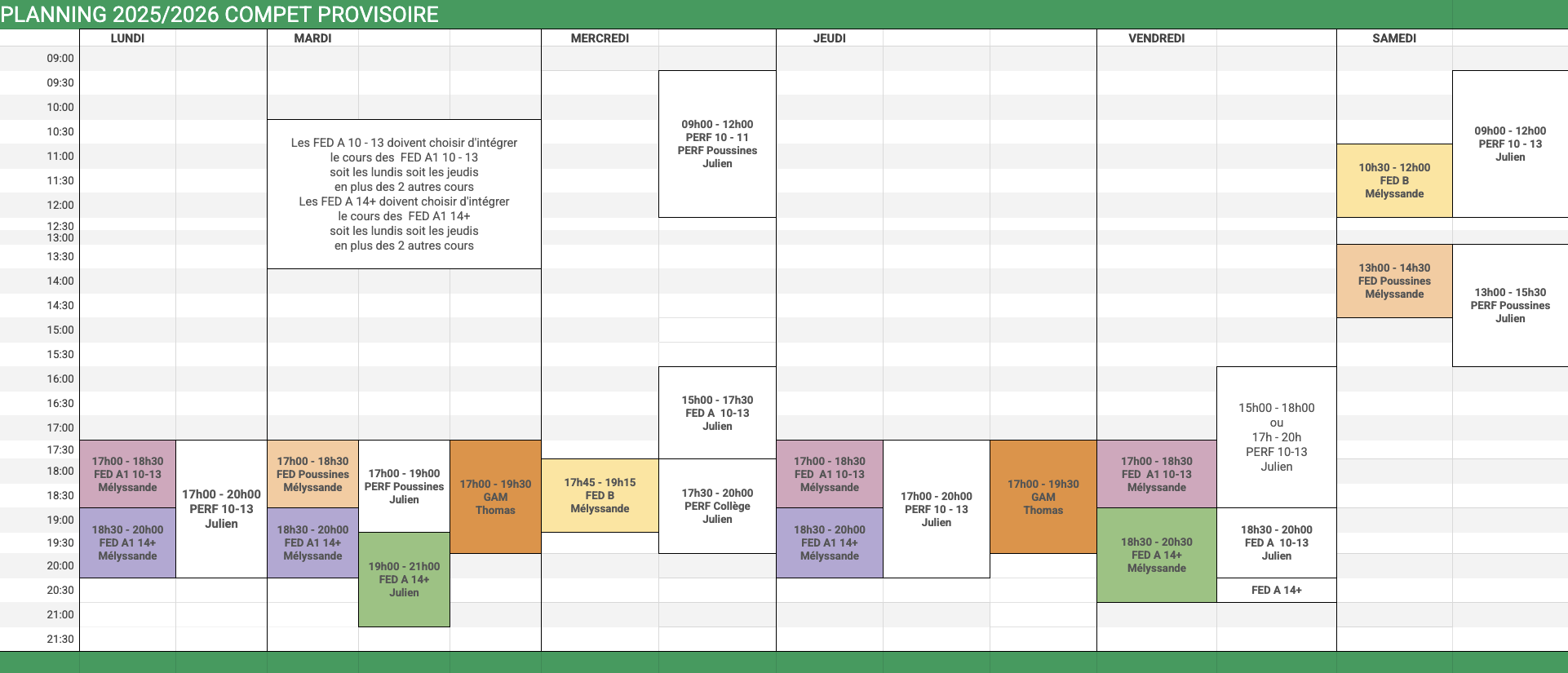 La planning de la saison 2025- 2026 est prêt! Les inscriptions auront lieu lors de la fête du sport et dates de permanences